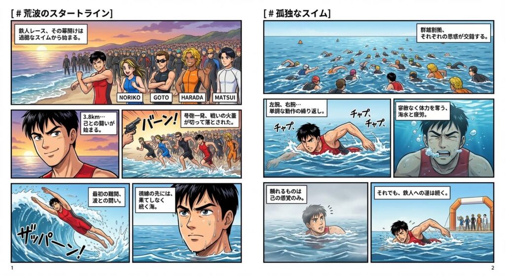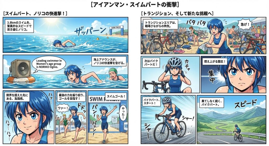 「調子いいかも」ノリコは幸先よく、第1種目のスイムを終えていった。