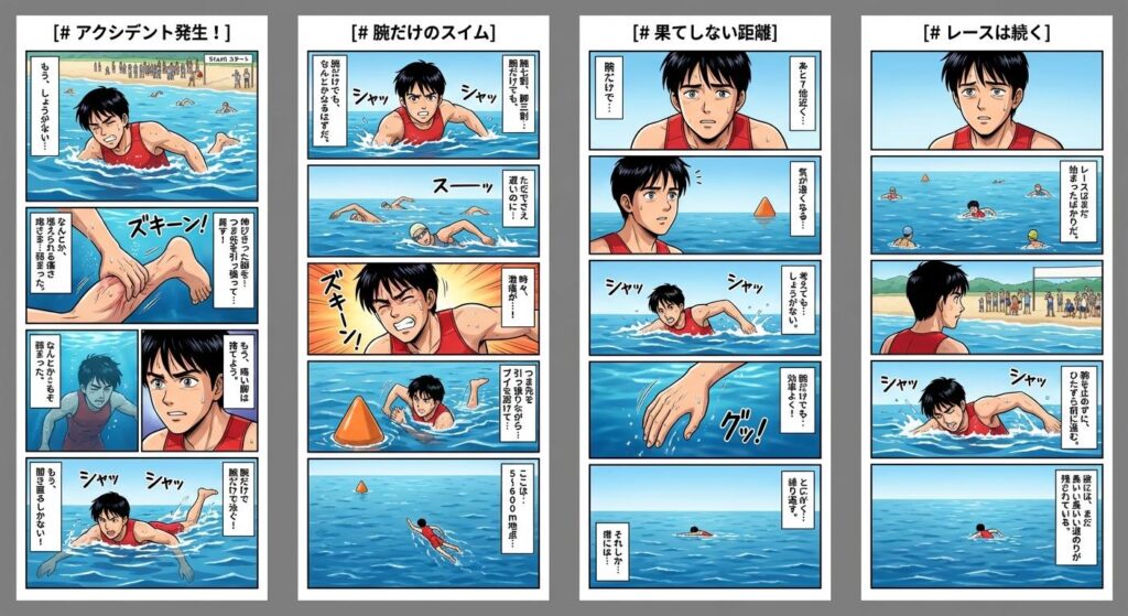 トライアスロンのスイムで脚がつるのは、何度かある。しかし両足だ。立ち泳ぎもままならない。