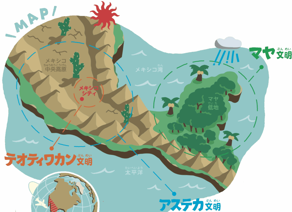 そして中米メキシコ付近では、紀元前1,200年頃からマヤ文明がユカタン半島を中心に栄えた。