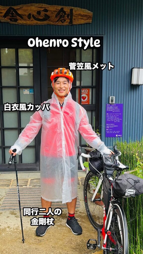 雨の中、仙遊寺を出発。これが雨の日バイクお遍路スタイル!