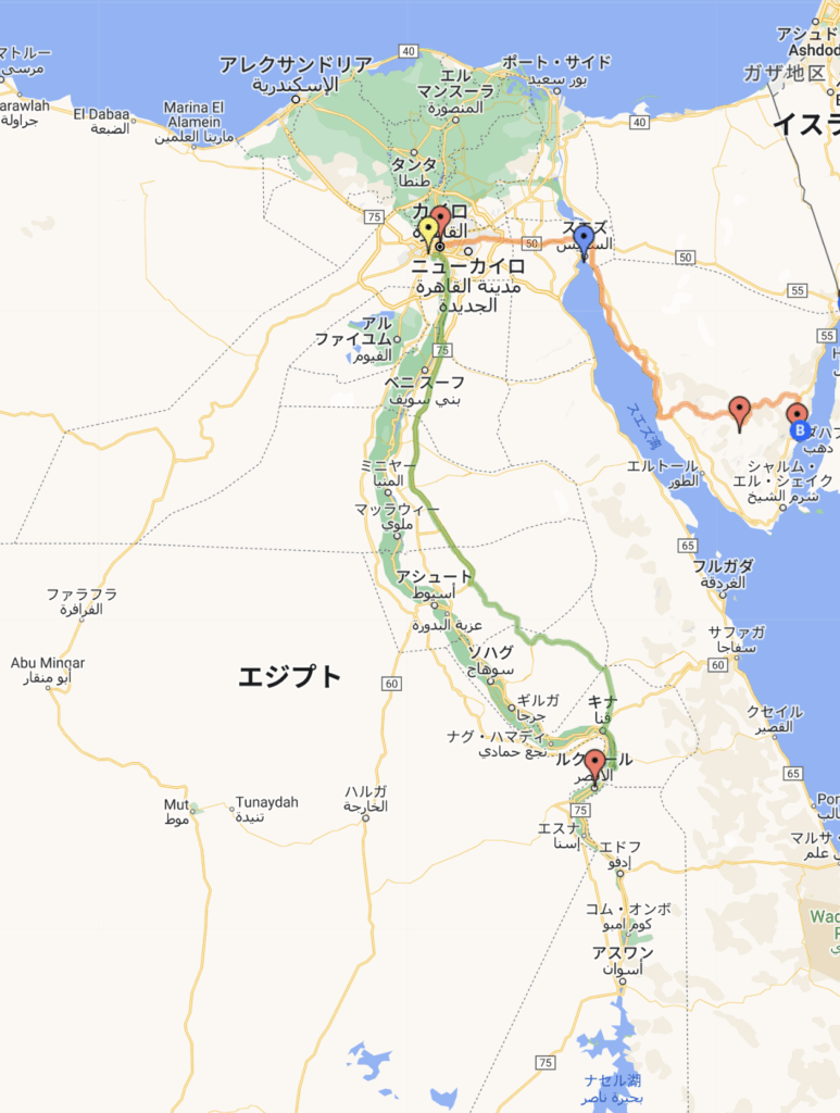 スエズ運河を渡るとそのすぐ先がカイロだ。だがここは一旦カイロを後回しにして、進路を南に取る。