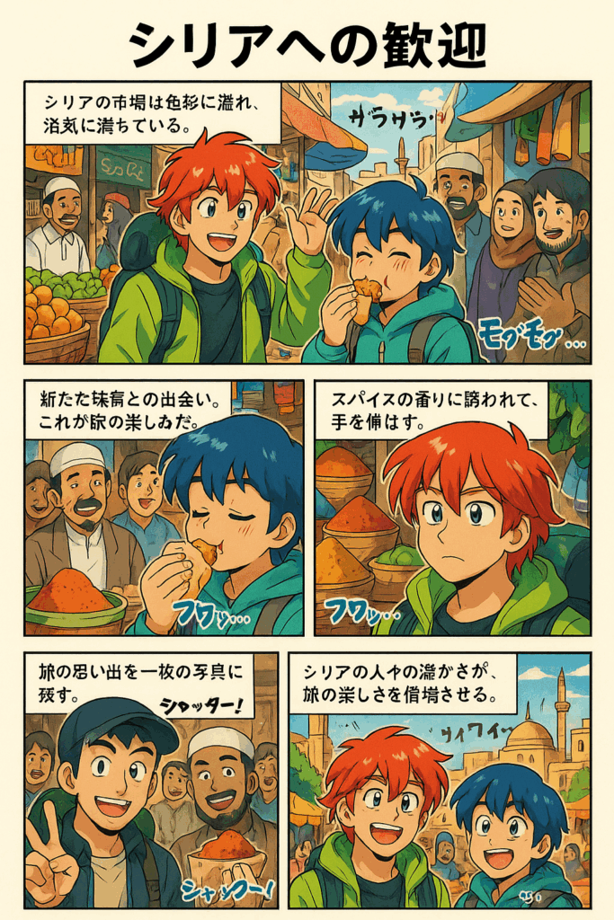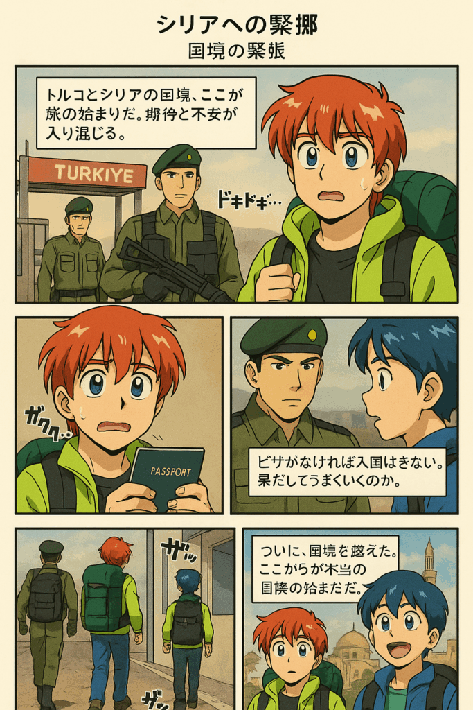 シリアへは、トルコ最南端のアンタキア国境から、陸路で入国する。トルコとシリアは同じイスラム教の国だが、クルド人問題などがあって両国の関係は悪く、国境の検問もギスギスした感じだ。シリア入国のビザは事前に日本の大使館で取ってあったが、それが無いと、この国境で追い返されてしまう。