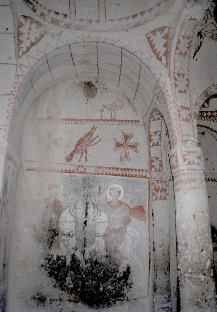 しかしカッパドキアでより目を引くのは、この奇岩の中に無数の教会があり、岩の天井などにフレスコ画のような絵がたくさん描かれている事。オスマントルコ時代に、キリスト教が迫害を逃れた信者達が、ひっそりとここに集まって暮らしていたそう。暖房などまったくない昔、岩の中での生活は物凄く寒く、その隠者達の生活はさぞ大変だっただろう。信仰心だけが頼りだったのかもしれない。