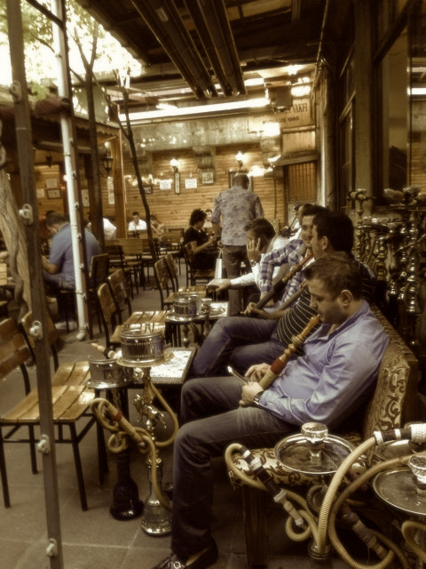 周りのお客はみんな、シーシャ(水タバコ)から煙を出して吸っている。これはものは試しだ、吸ってみよう。いろんな味があるようで、僕はアップル味のシーシャを吸ってみた。水を通っているせいか、あまり煙くなく、りんごの甘い香りが意外とイイ、なんとなくリラックスする気がする。ラリってる訳ではない。