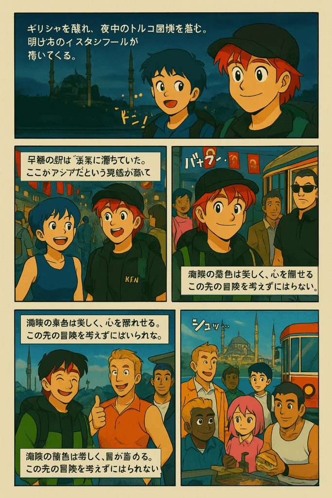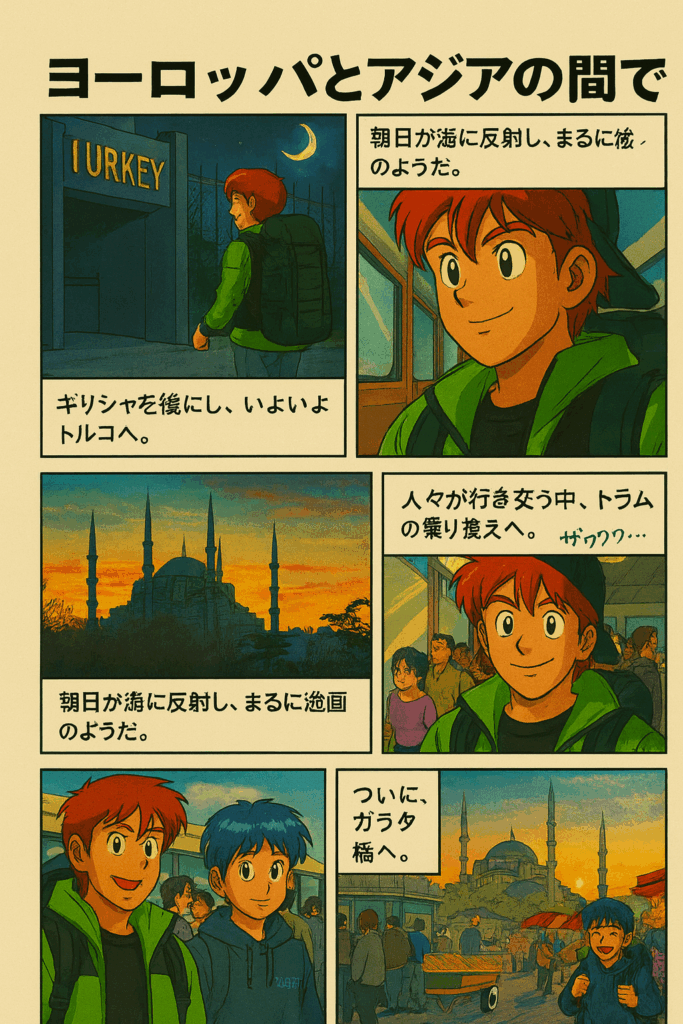 ギリシャから夜中のトルコ国境を渡る。そこから列車に乗り換え、明け方のイスタンブールに着く。