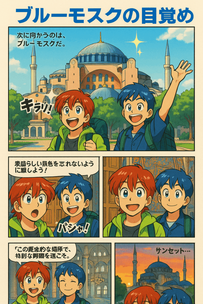 そんなに青くはないが、アヤソフィアが赤っぽいのに対して、ブルーモスクと呼ばれている