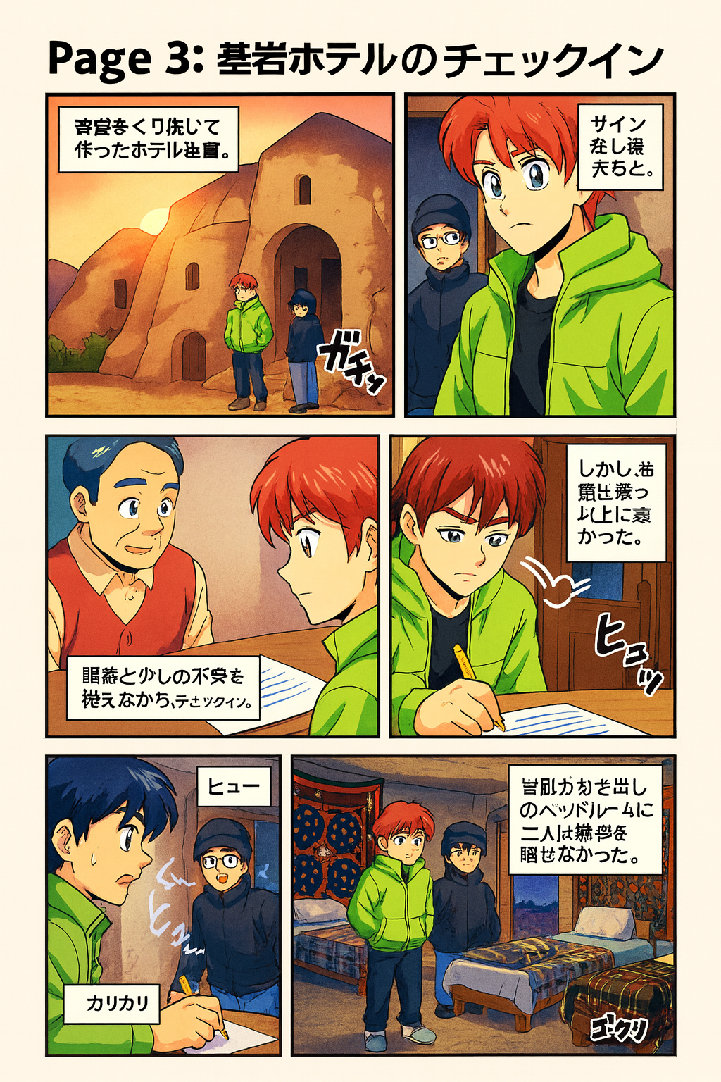 その後、岩をくり抜いたのをそのままホテルにした奇岩ホテルを見つけてそこにチェックイン。